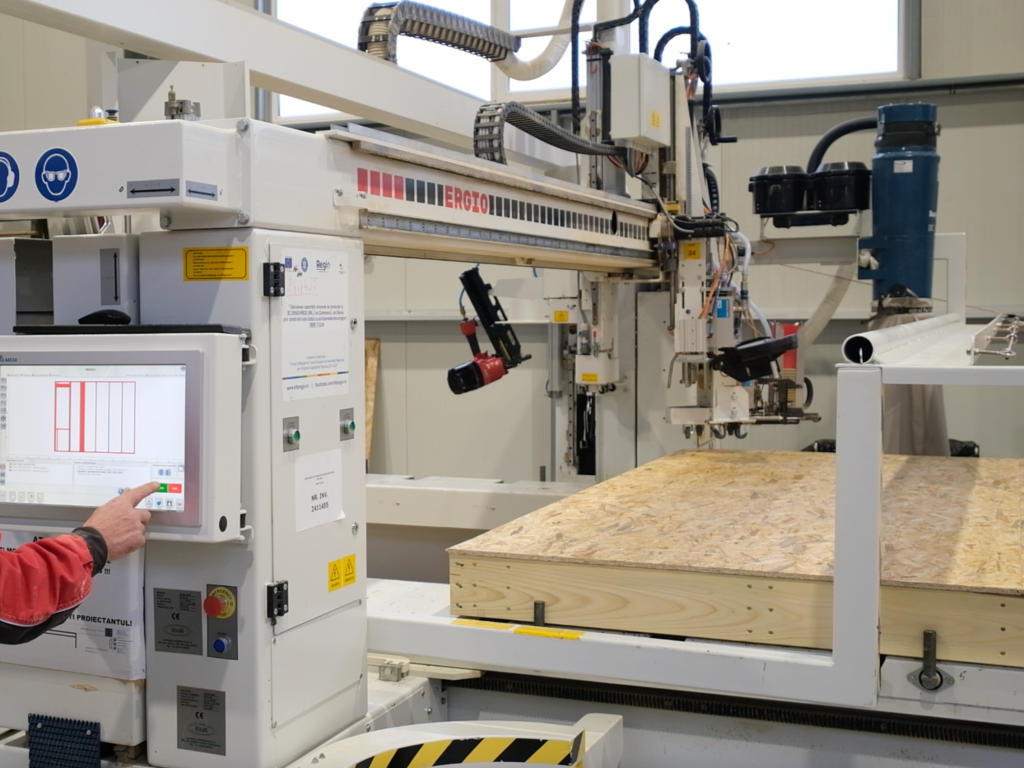 The company invests in a complete automated production line for timber frame systems, enabling high-volume production while maintaining precision, consistency, and quality control.