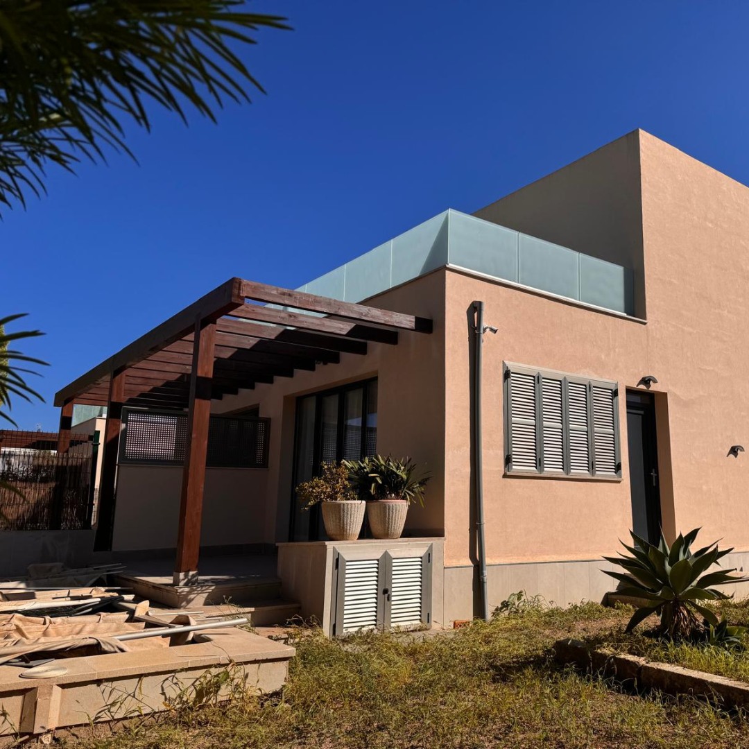 We’re proud to unveil a stunning residential project featuring three buildings: a single home and two joined houses, built in the elegant Spanish style with flat roofs.