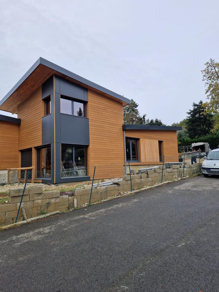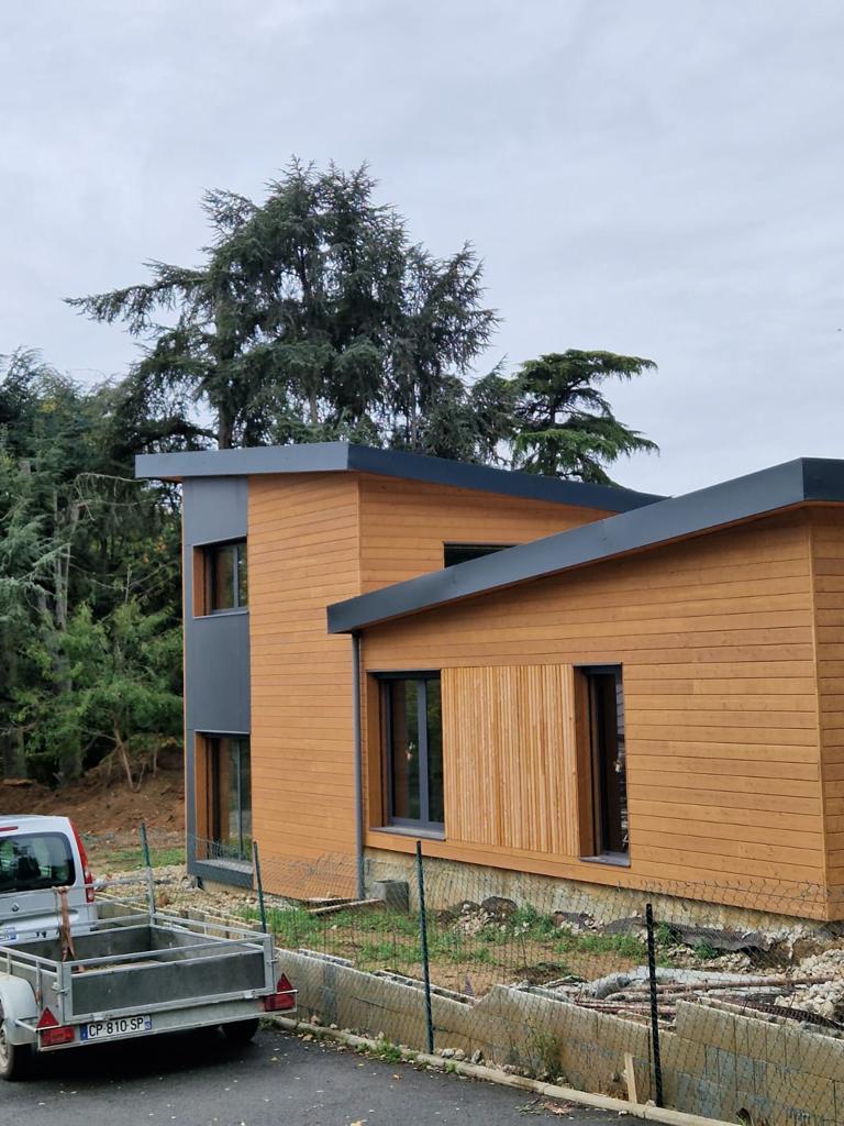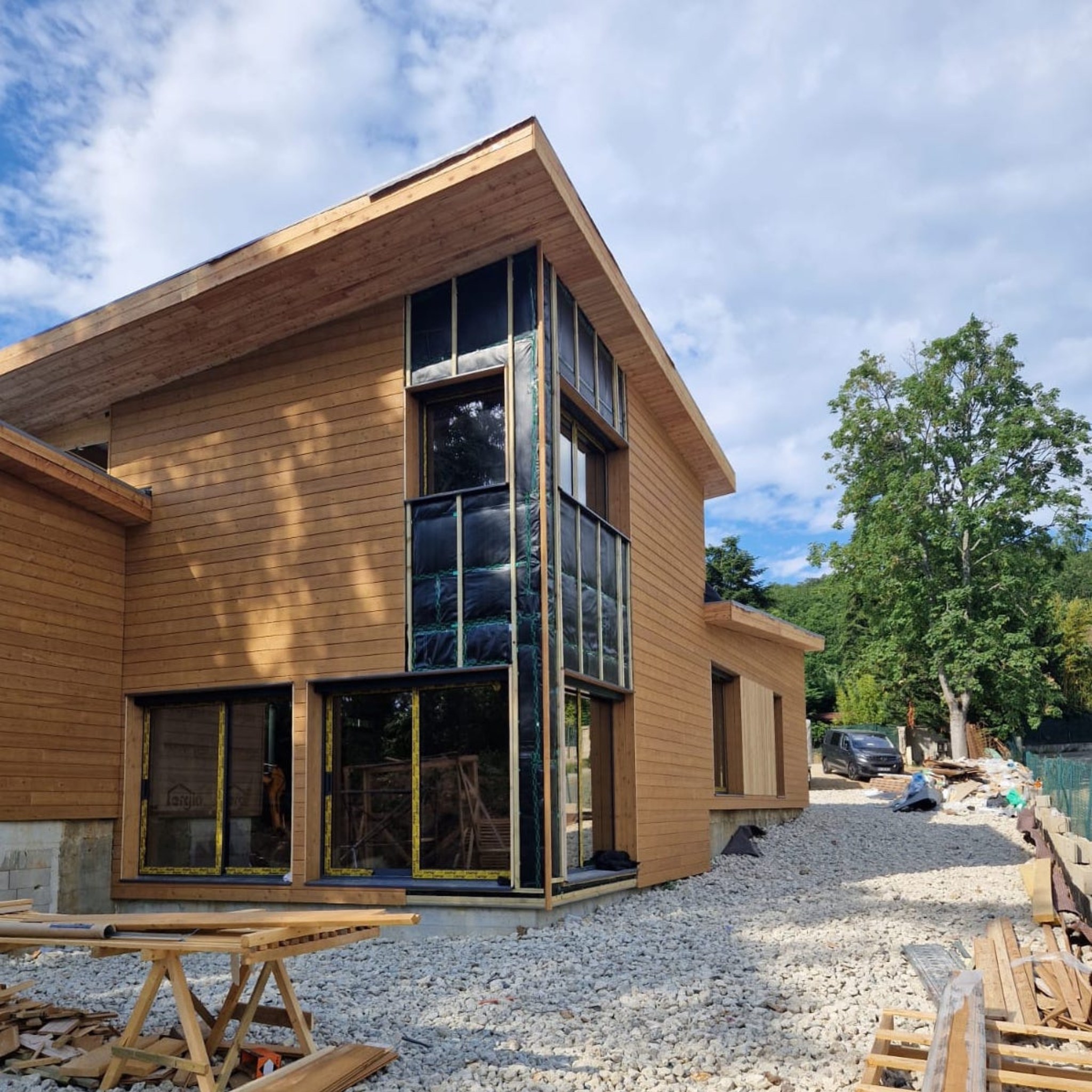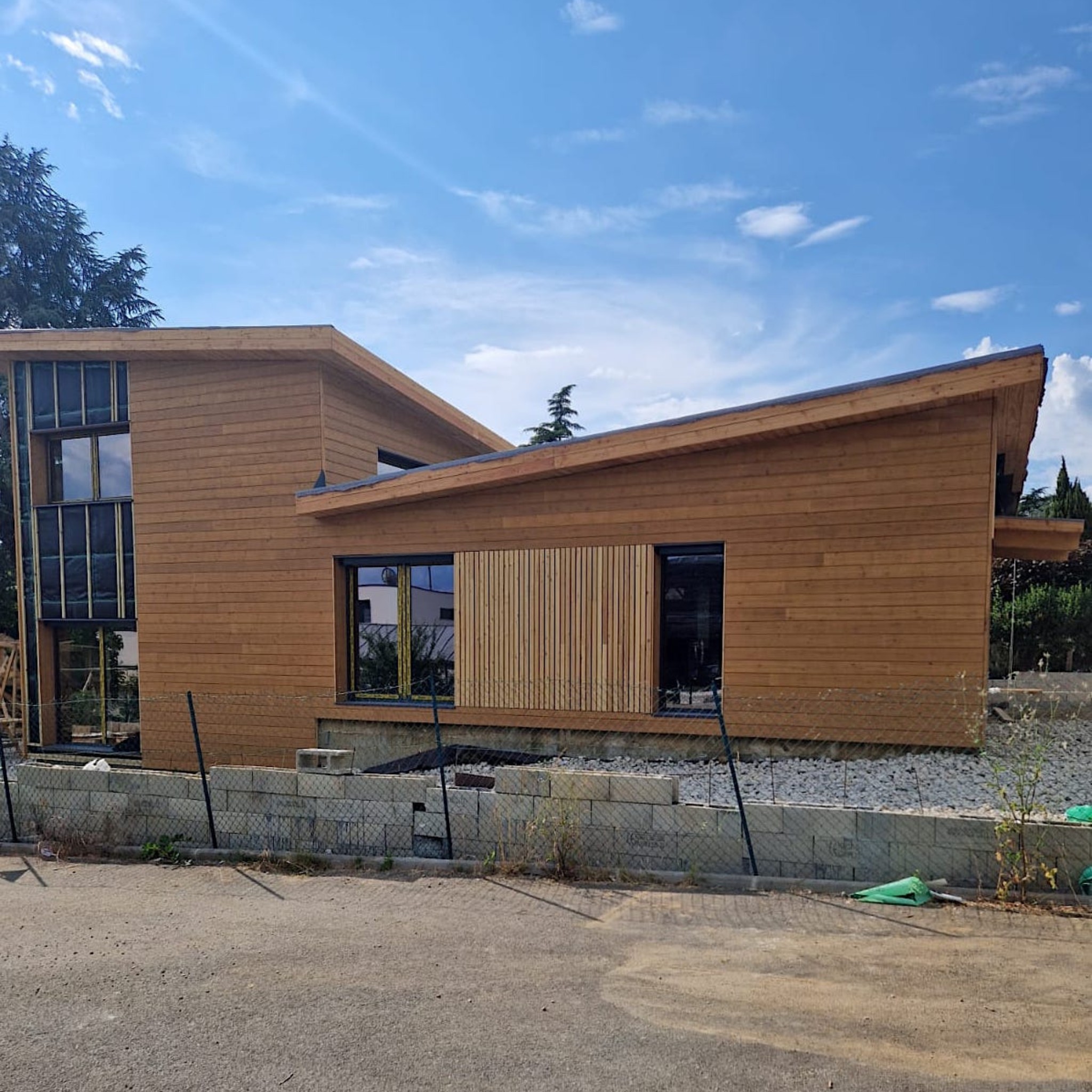 The building is quite impressive, covering an area of 210 square meters. It incorporates 40 cubic meters of wood and is designed to feature large open spaces.