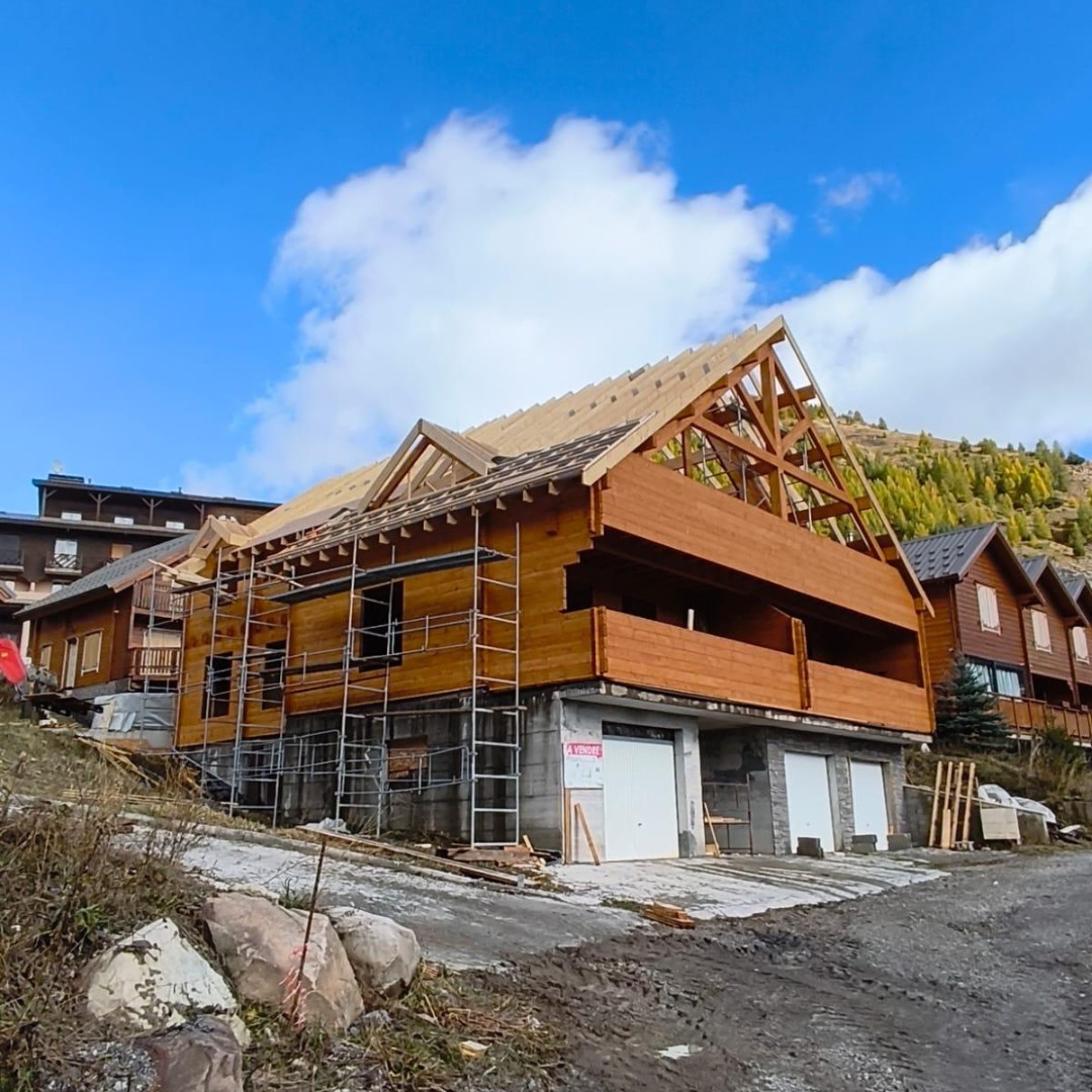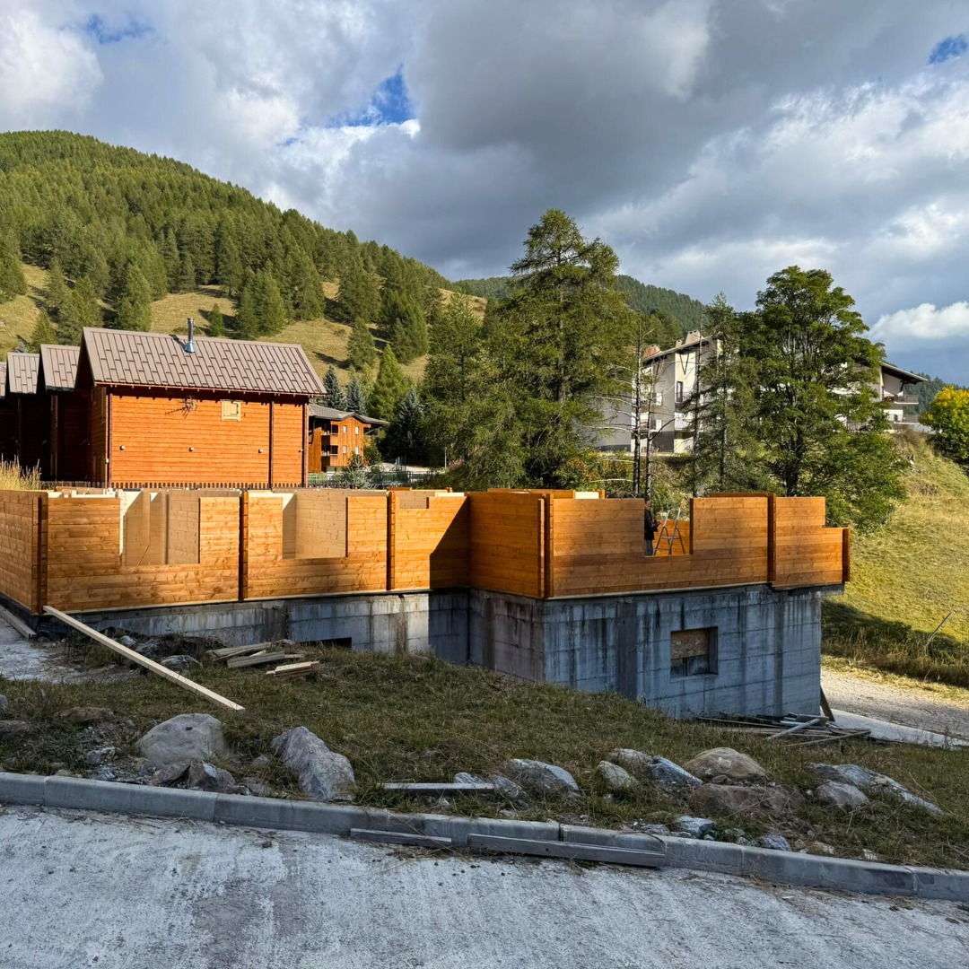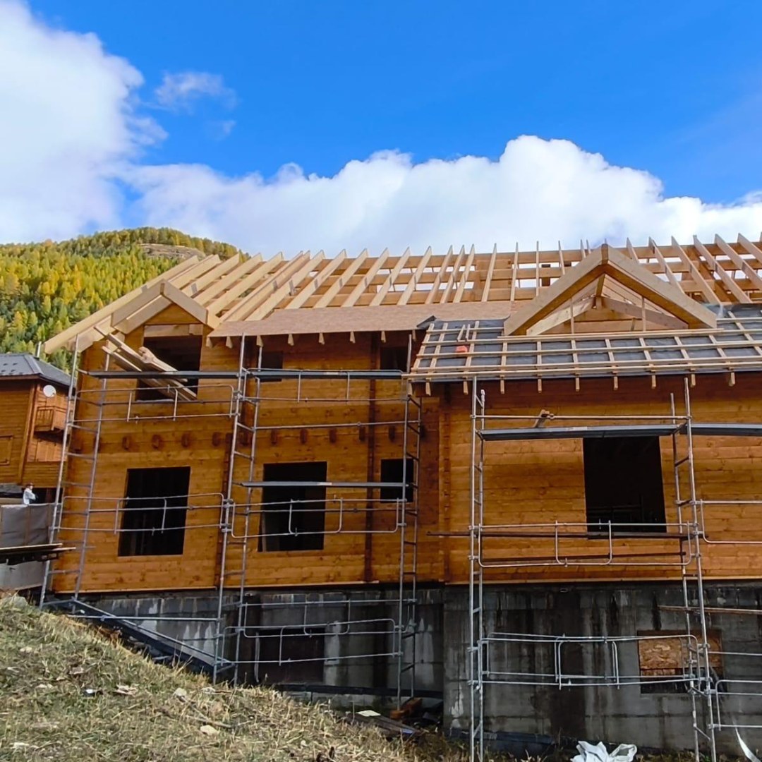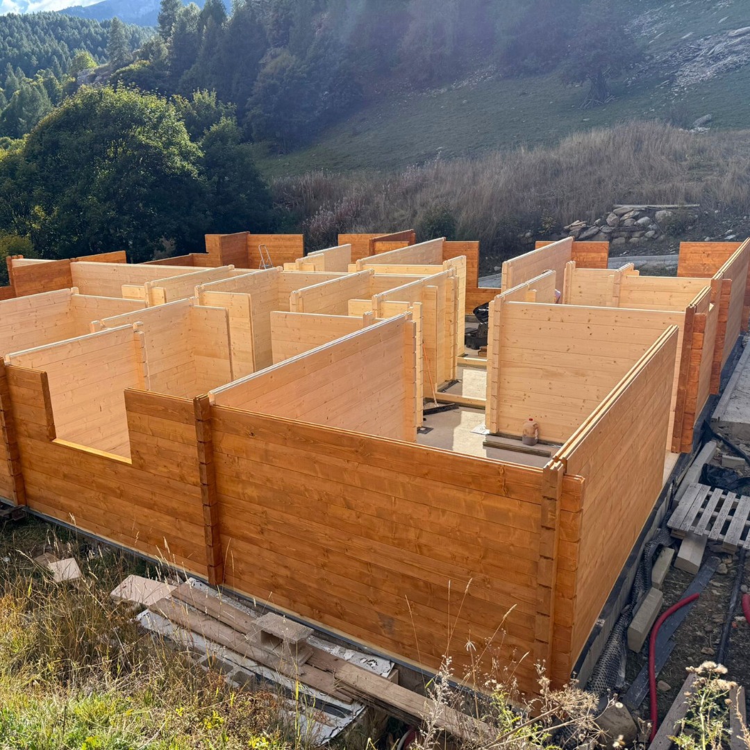 Our Nordic System (blockhouse) chalet in the Alpes des Hautes-Provence is shaping up beautifully. The structure now stands strong at over 70% completion, with only the final details left before this mountain project reaches its peak.