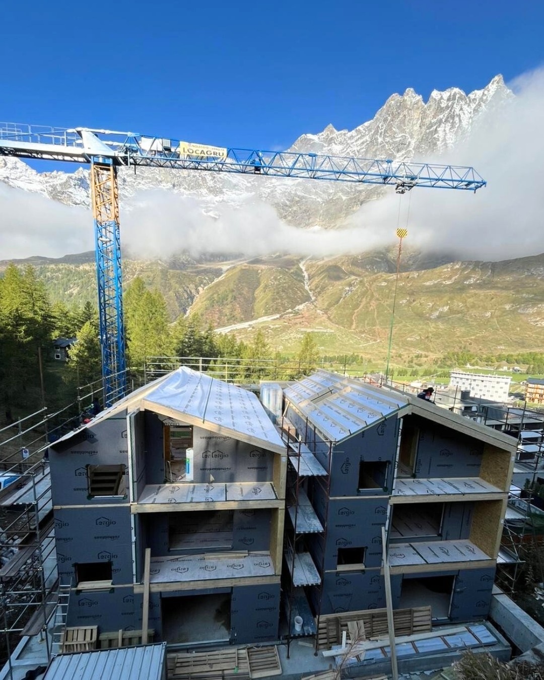 The flat ceiling has glue-laminated beams and a wood profile of 19 mm. For the roof, we used as a final layer Rothoblaas Bytum 3500, an effective waterproofing of timber structures that also ensures permanent stability to UV rays because of its slated surface. We also provided lamellar wood rafters and lamellar pillars for the terrace area.