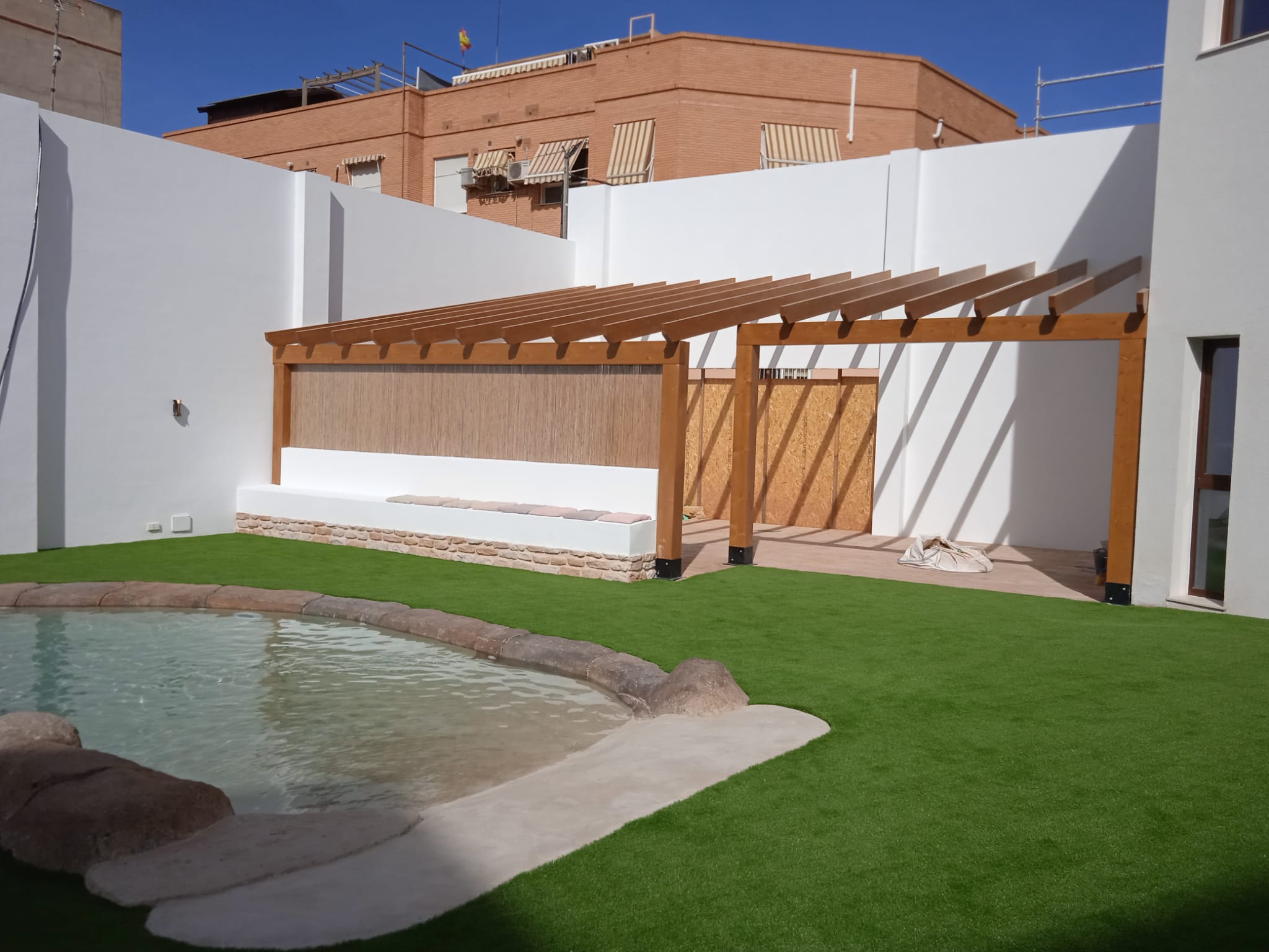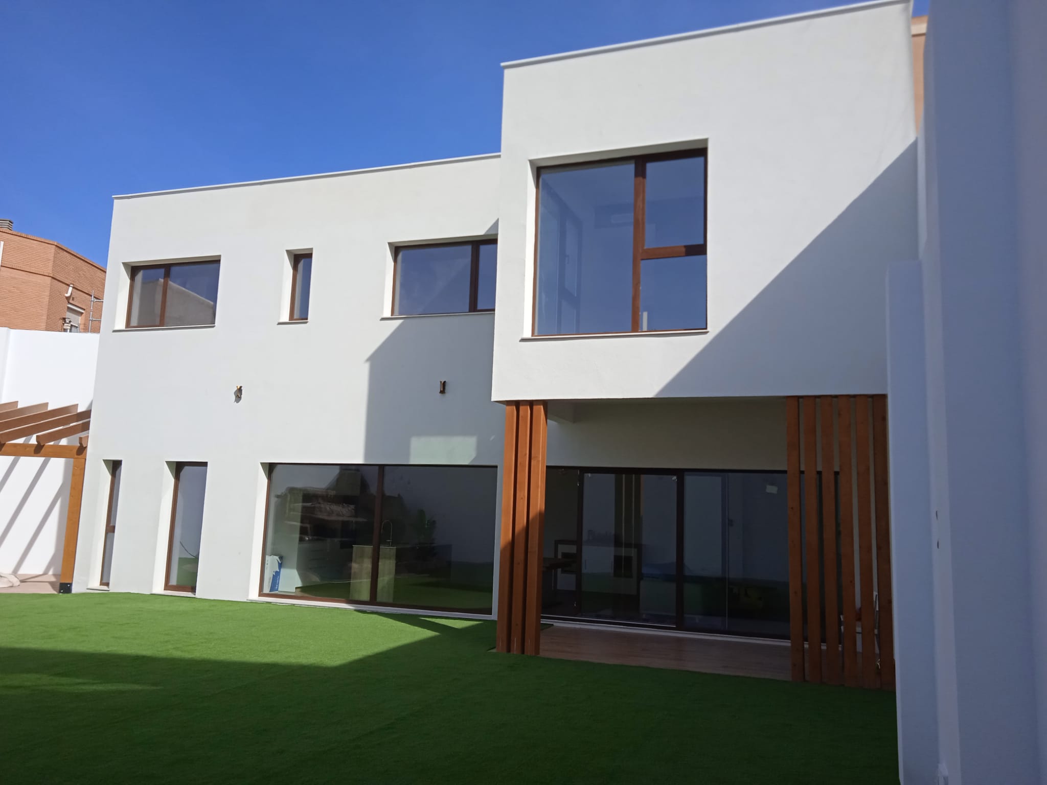 This is a 180 sqm house with a flat roof and distinctive design. The project draws inspiration from the city of Manises, Valencia, which combines traditional and modern architectural styles. The town is known for its picturesque whitewashed houses, geometric patterns, and nature-inspired designs, which all influenced the creation of this house.