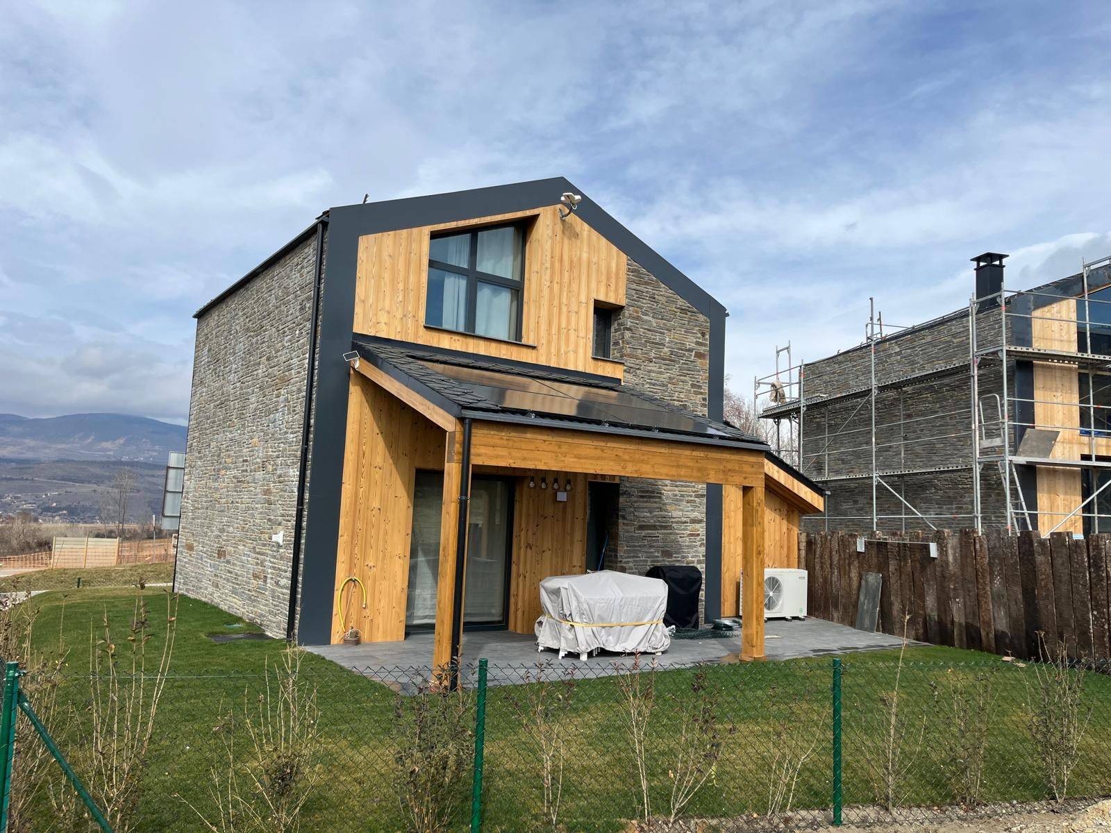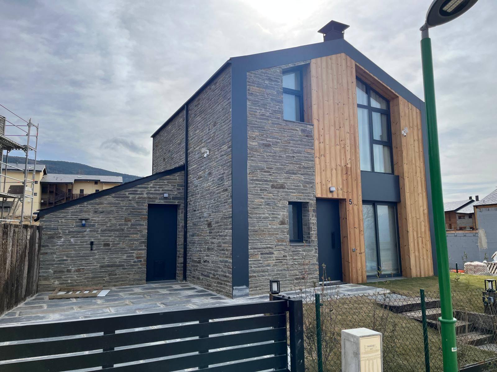 Finishes: a balanced mix of fribrociment, natural stone, and timber cladding gives the home its distinctive character.