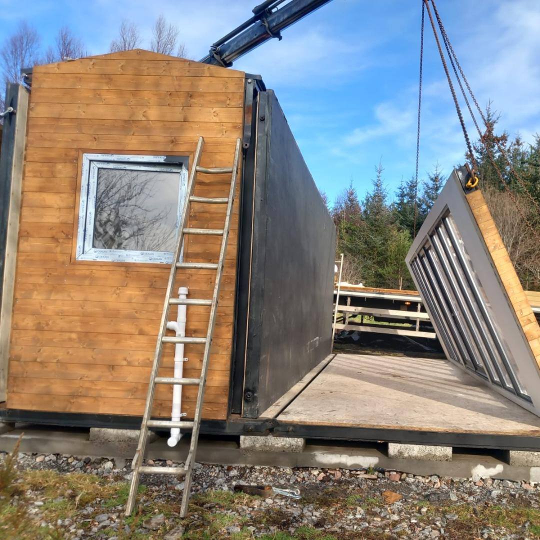 Meet Origami, our latest timber mobile home, assembled in Scotland. Built for mobility, this prefabricated structure comes together as seamlessly as its name suggests—and the assembly took only 2 days!